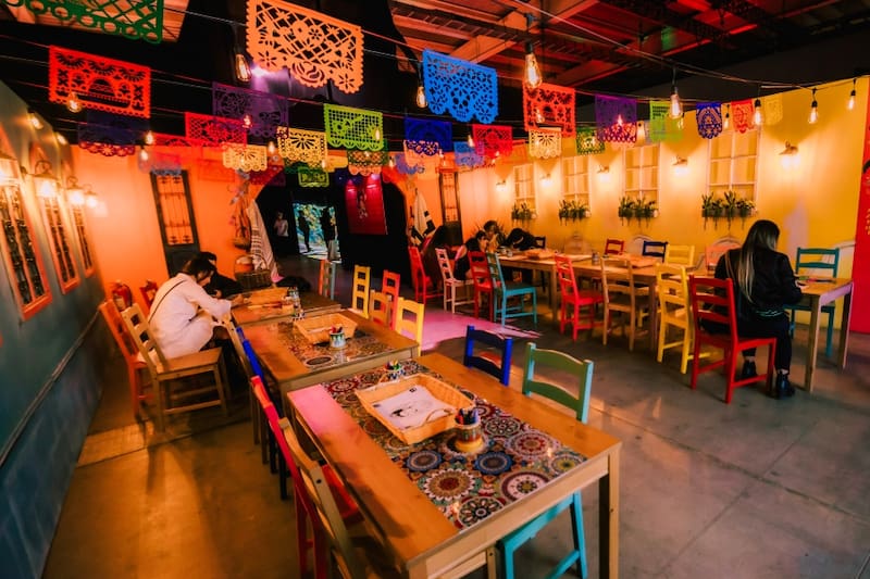 Aquí, podrás tomarte fotos inolvidables y participar en un photo booth especial donde una inteligencia artificial transforma cada instantánea en una obra de arte única, incorporando elementos característicos del estilo de Frida Kahlo.