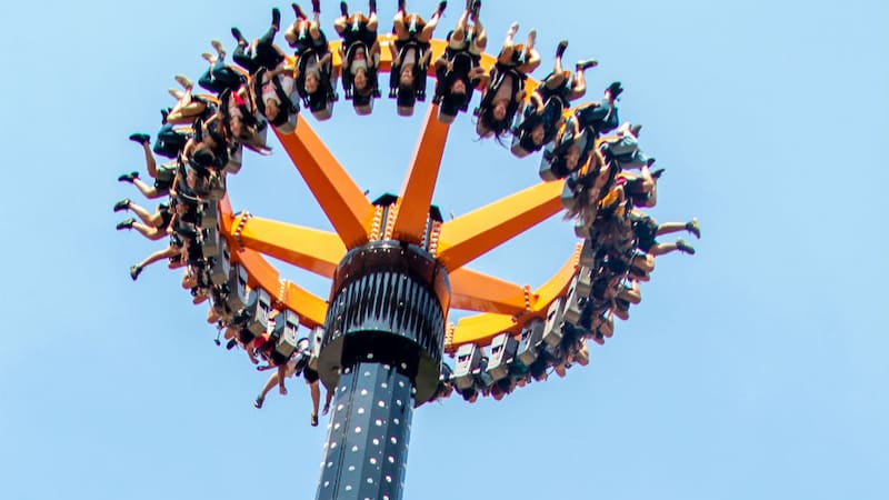 ¿En qué consiste? En una estructura con un gran péndulo que sostiene una góndola en la que van sentadas, mirando hacia fuera, máximo 30 personas.