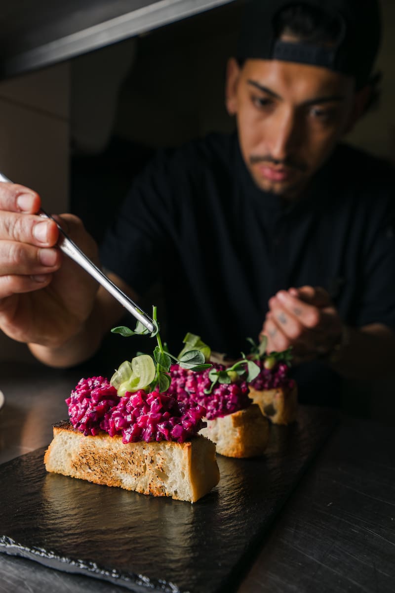 La de tapas ofrece desde Croquetas de hongos hasta Tártaro de betarraga.