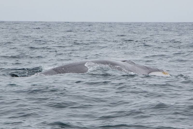 El lomo oscuro de una ballena fin se asoma imponente a un par de metros del bote. Dispara sus típicos chorros de aire y agua y se esfuma, para resurgir un par de veces más y retirarse silenciosamente sumergida completamente, como si dijera "fue suficiente por hoy, seguiré mi camino".