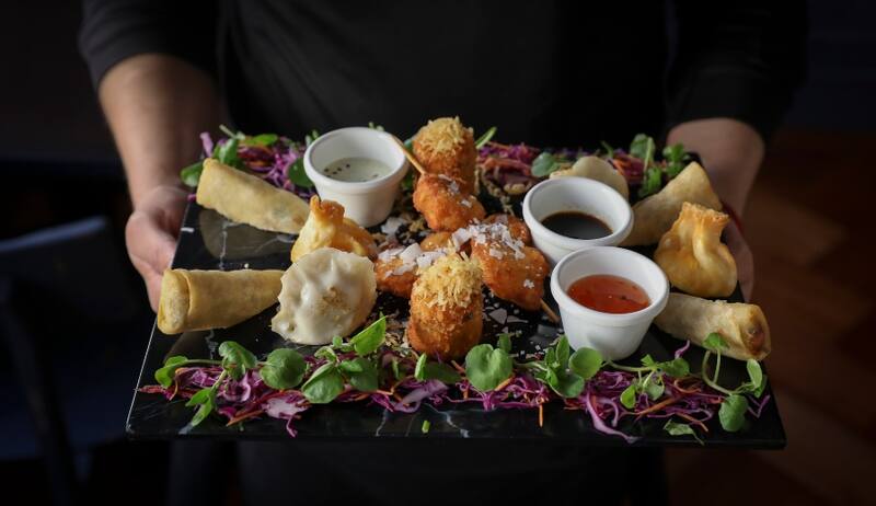 A las que puedes sumar una opción de entrada veggie como el Vegan tofu ($ 6.150), sabrosas bolitas de verduras, mango y coco rallado, rellenas de tofú, terminadas en panko y que vienen con salsa spring roll.
