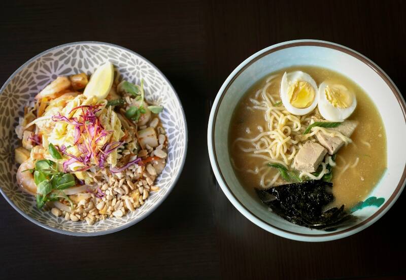 Partiendo por el pad thai ($ 11.850), clásico tailandés, de fideos de arroz salteados con pollo, camarón, tofú, verduras y huevo.