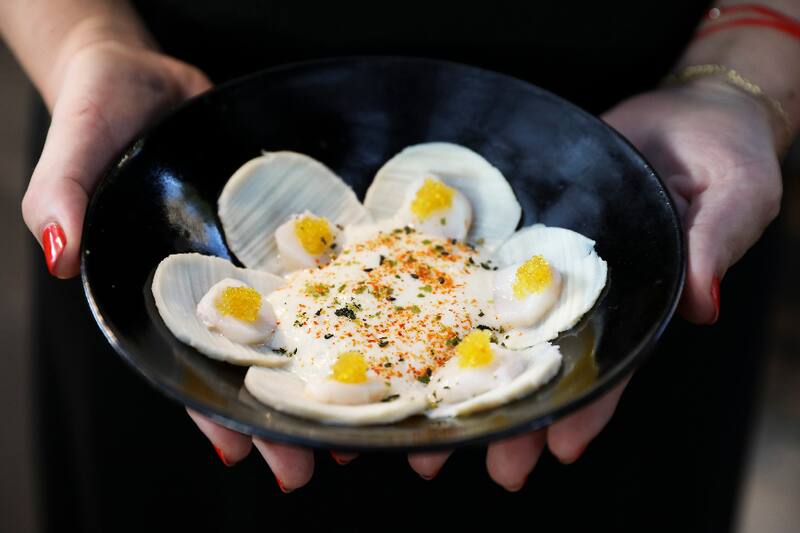 Además de platos que son reinvenciones de platos tradicionales nipones, como el Ikura Don ($ 9.900) de shari, arroz aderezado para sushi, e ikura o caviar rojo, que son las huevas de salmón; o el loco y erizo usuzukuri ($ 14.900), que son cortes de locos y lenguas de erizo con espuma del mar.