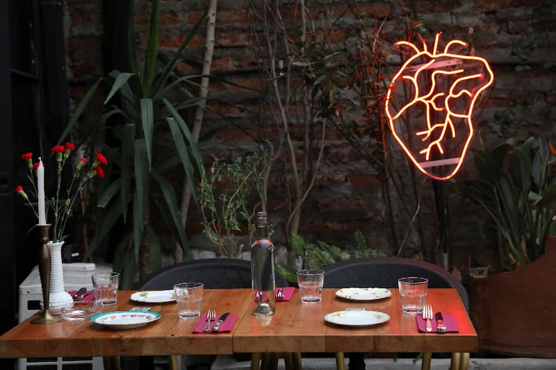 Es decir, la de un local que recrea ese Santiago antiguo y bohemio, con lámparas de lágrimas y mullido terciopelo rojo, y donde cada detalle cuenta una historia, desde los platos vintage, todos distintos, hasta la cuchillería.