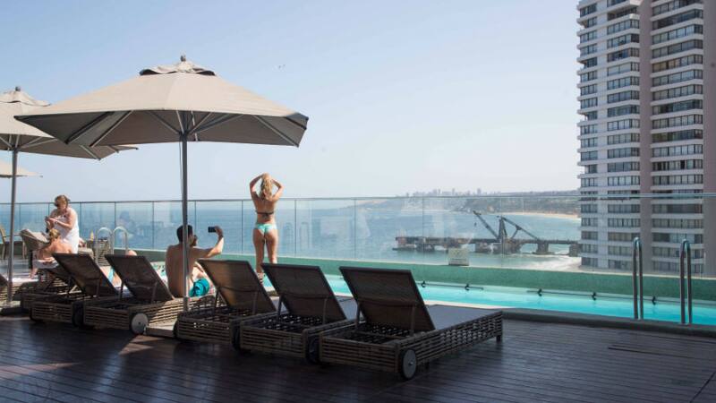 Eso no es todo, también tiene una piscina con vista al mar en su último piso, donde podrás relajarte en reposeras bajo la sombra de paraguas.
