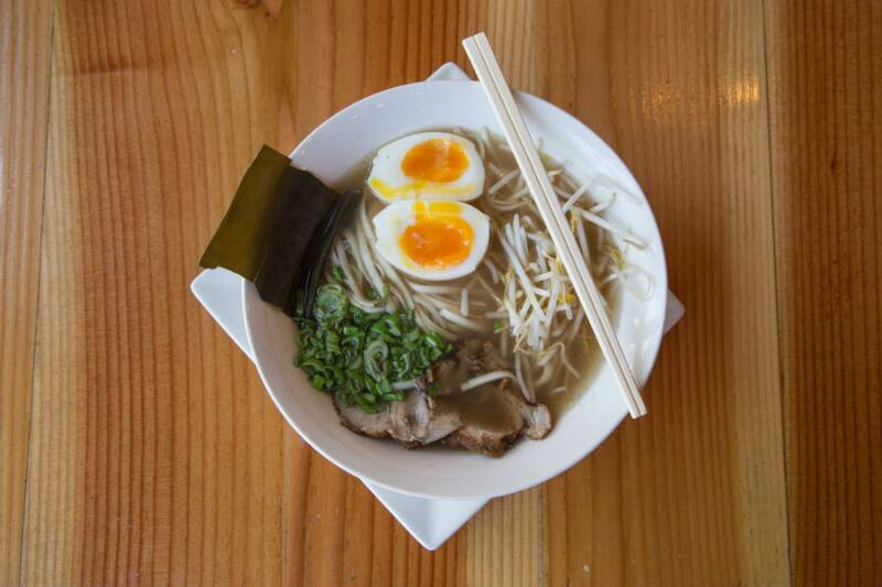 Es un local muy acogedor, con pinturas que hacen los mismos dueños Andrea Latorre y Gustavo Marowski y, como ya decíamos, ahí no te puedes quedar sin probar su “Ramen K”, que lleva caldo shoyu o de cerdo, con trozos generosos de esta carne, pastas udom, alga kombu y huevos de gallina feliz marinados en soya y mirín, esta última un tipo de sake dulce ($ 8.000).