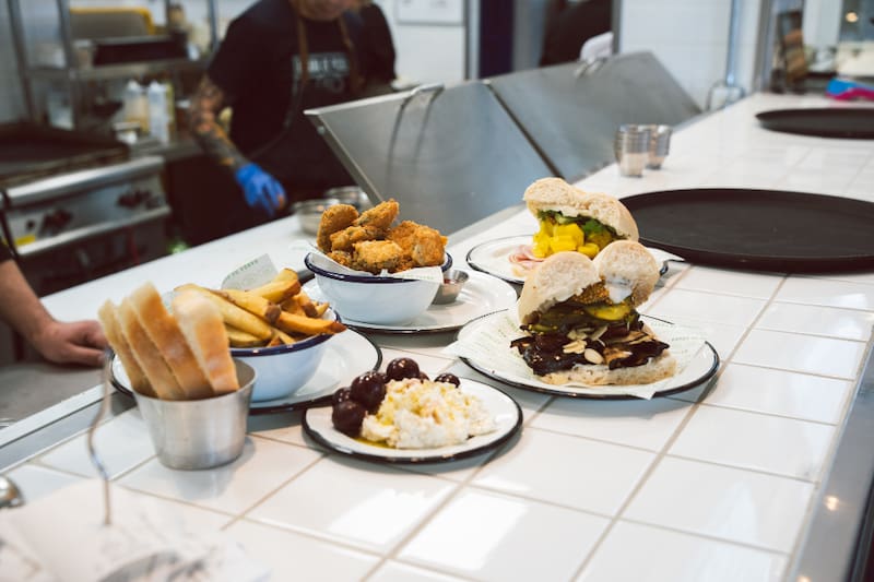 Otra opción son los veganos, como el de Berenjenas asadas ($ 8.000), que lleva además tomates secos conservados en aceite de oliva, pickle de pepinillo dulce, almendras laminadas y mostaza dulce. Más mayonesa veganesa clásica o con sriracha.