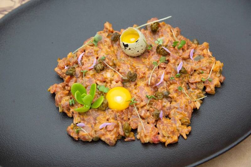 También con platos emblemáticos de su trayectoria, como el tartare de filete ($ 9.300), que son corte de carne finita, con un toque de aderezo propio, pepinillos, cebolla, alcaparras y flor de sal de cahuil, más flores de estación y huevos de codorniz.