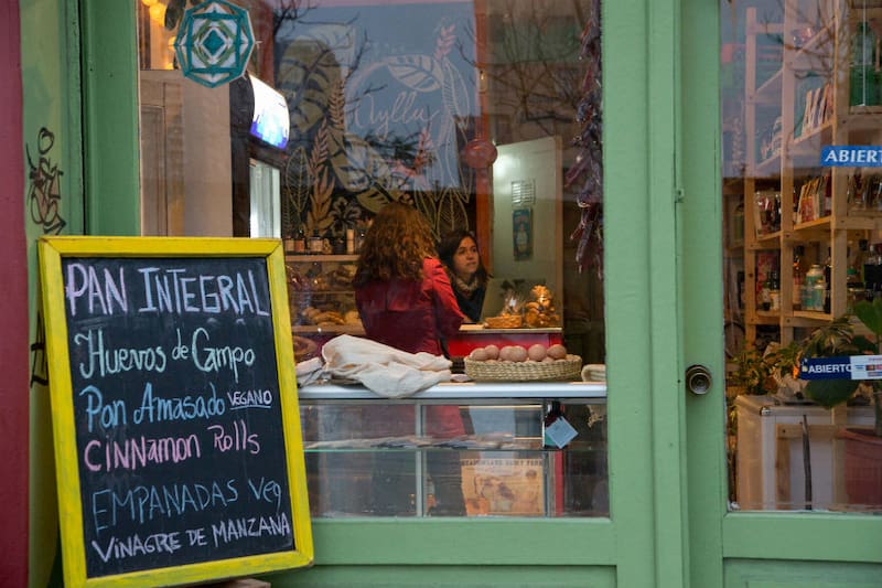 También, tienen un sabroso pan de vegano de suave textura que hacen con semillas de linaza y sésamo ($ 3.000), y unas deliciosas empanadas de harina integral.