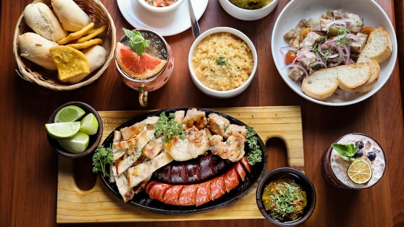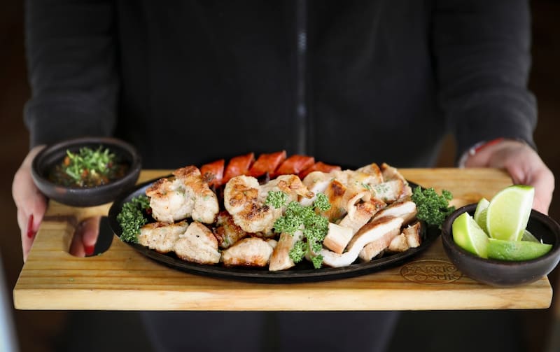Mientras que entre los fondos hay clásicos chilenos como arrollado con prieta y papas cocidas ($ 12.900), asado de tira ($ 8.400) y arrollado de huaso ($ 10.900), que puedes acompañar con papas nativas ($ 3.900).