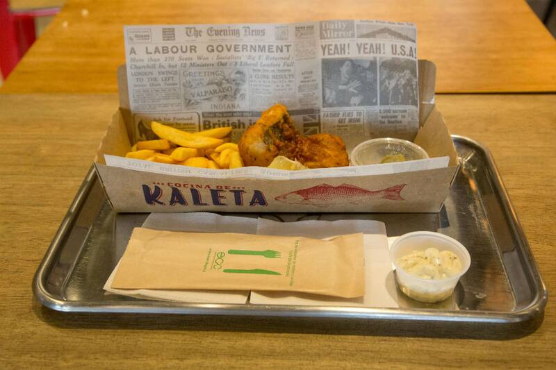 Eso, más papas fritas caseras y mushy peas, un puré de guisantes típico inglés, y la salsa que elijas, que puede ser tártara, aliolí o la “picarona”, con ají chileno.