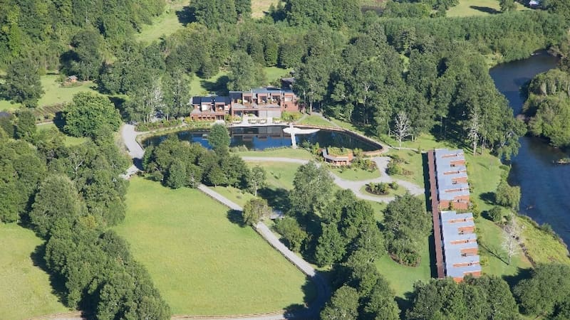 Las instalaciones del hotel, hechas en madera de lenga y de baja altura para no romper el entorno, se encuentran en medio de un parque de 23 hectáreas, con árboles centenarios, praderas verdes y, lo mejor de todo, a orillas del río Liucura ("piedra blanca", en mapudungún).
