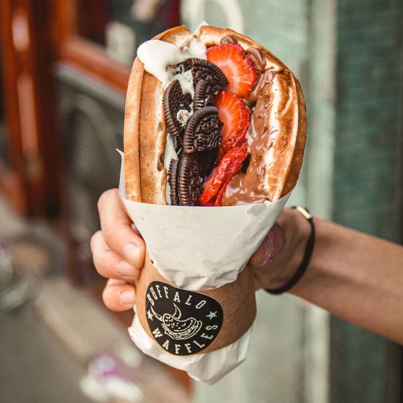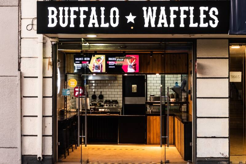 "Waffles ricos, sexys y contundentes" es el lema de Buffalo Waffles.