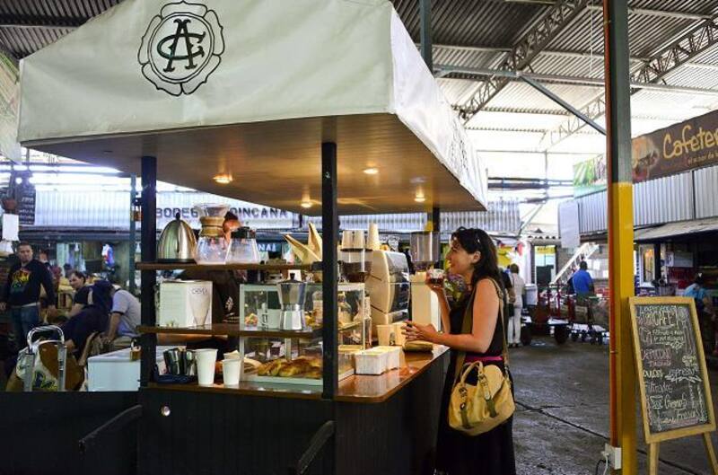 Está al frente de “La Marita” (el local 837), famoso por sus sánguches en sopaipilla. Lo que encuentra en ese carrito es un café recién tostado de granos de Guatemala (los 250 gr para llevar a casa cuuestan $ 4.990). Puede probarlo en el lugar, en un expresso ($ 700) o filtrado a mano en una taza más grande, cosa de poder disfrutar todo su olor y sabor ($ 1.500). Otra alternativa es pedir un capuccino ($ 1.300).