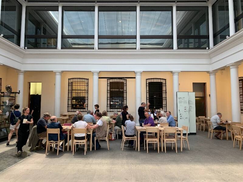 Esta cafetería ubicada en el patio principal del Museo Precolombino, empezó a funcionar al poco tiempo de inaugurada la ampliación de este espacio (2014), a cargo del arquitecto Smiljan Radic.