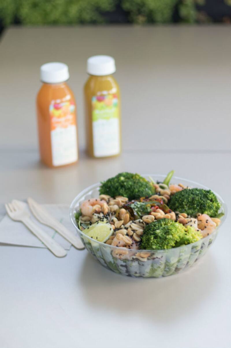 Además tienen contundentes ensaladas, como la "Pad Thai" ($ 5.300), que lleva brócoli, pimientos salteados, camarones y tallarines de arroz, cubiertos con maní y sésamo negro, todo servido sobre una cama de hojas verdes. El aderezo lo puedes elegir tu.