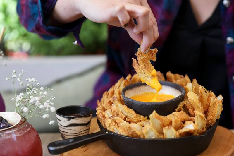 Mientras, tú puedes probar algunas de las preparaciones "salvajes" de la carta, ideales para compartir, como la adictiva Blooming onion ($ 10.900).