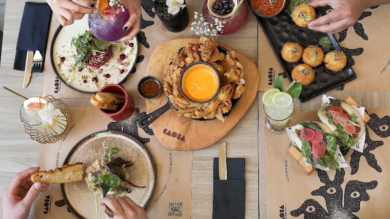 Una inspiración que también se encuentra en la carta de Caoba, donde hay ricas preparaciones de street food para comer con las manos, bien frescas, casi todas para compartir y donde alrededor del 40% son veganas o vegetarianas.