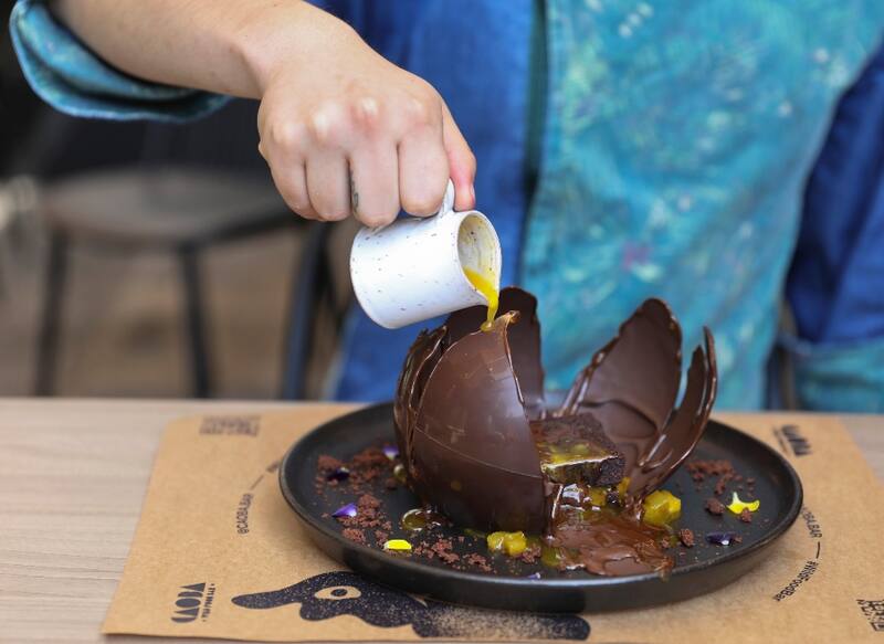 Deja espacio para el postre, que hay uno que soprende, el Espirítu Caoba ($ 12.500), una esfera de chocolate que al llegar a la mesa se derrite y deja al descubierto un brownie casero con gel de maracuyá, mango confitado, helado y un toque picante. ¡Perfecto para golosear!