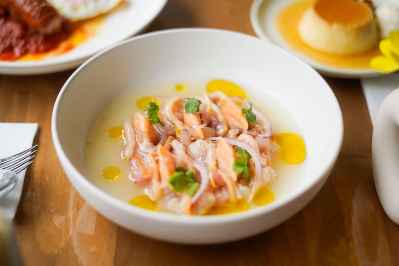 Y como te contábamos, el estilo de Caos Comedor Café es comfort food, sus platos favoritos con un sello propio, por lo que te encontrarás con una carta acotada, con opciones como el Ceviche de almejas ($ 9.000), de pesca del día, con almejas frescas, ají y aceita de oliva.