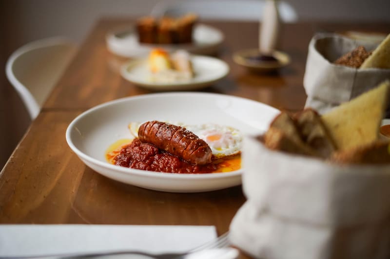 Así, puedes probar por ejemplo, la panera, con una selección de distintos pancitos del día, que puedes acompañar de huevos a la copa y salsa holandesa ($ 7.000); o de huevos fritos con chorizo y pomodoro ($ 8.600), por ejemplo.