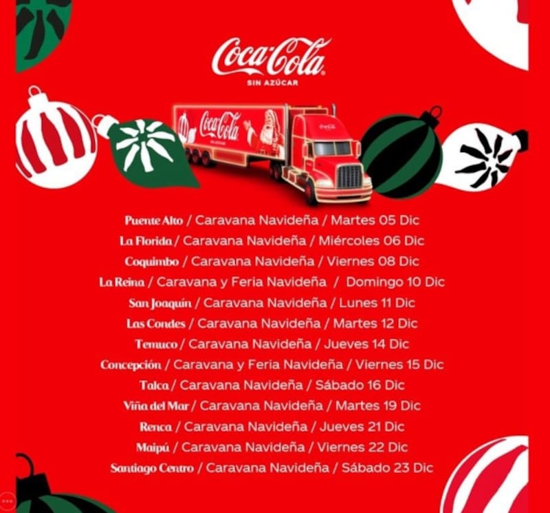 ¿Todavía no ves pasar la Caravana Coca Cola 2023 por tu ciudad? Tranquilo, que su ruta por Chile sigue hasta un día antes de la Nochebuena.