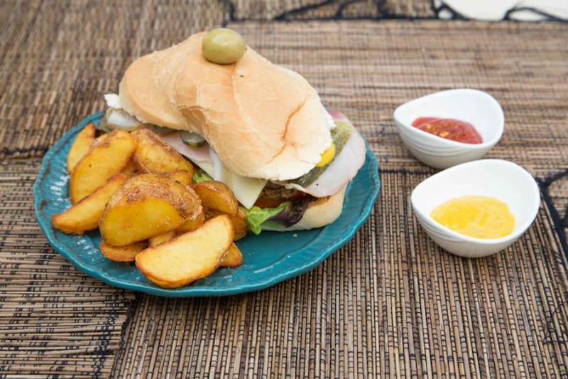 También de la isla es el sándwich de cerdo asado que previamente maceran en salsa mojo, esa que hacen con pimienta, pimentones, ajo, comino, azafrán y más condimentos, para que quede bien sabroso ($ 6.990). Lo acompañan con pepinillos, queso y una mostaza con miel.