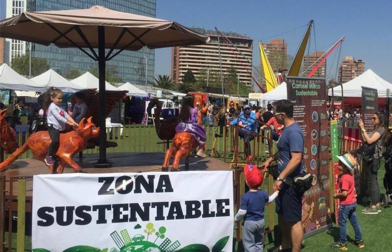Y ahí también podrán subirse a una carrusel de caballos, pero sustentable, que funciona con pedaleo.