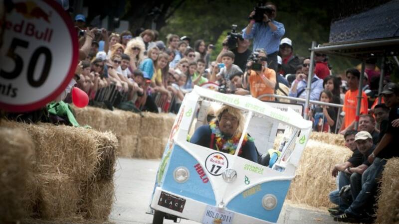¿Se acuerda de Los autos locos, esos dibujos animados con protagonistas que conducían vehículos bien extravagantes? Algo parecido es lo que se vivirá hoy domingo, a las 11 AM, en la empinada Av. Talinay, en La Reina. Ahí habrá una carrera, la Red Bull Soapbox Race, en que 45 equipos conducirán originales autos diseñados por ellos mismos e impulsados sólo con la fuerza humana. Vaya a ver los prototipos más creativos (hay uno parecido al de Los Picapiedra y otro al Batimóvil), que recorrerán 400 m para luego ser evaluados y premiados. Instálese a los costados de la calle, para quedar protegido por barreras.