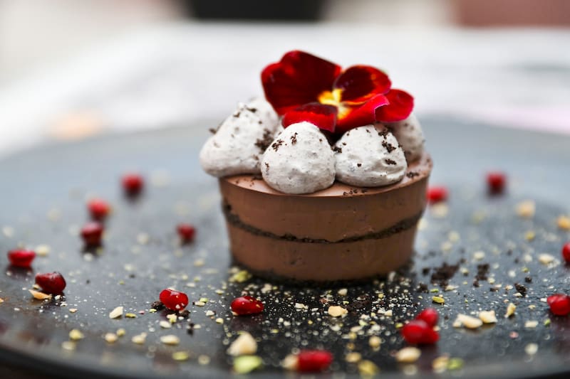 ¿Y algún postre recomendado? El Domo de avellana ($ 6.900), que es un domo de avellanas europeas, con cacao amargo y leche de coco, con centro de maracuyá, base de almendras y cacao.