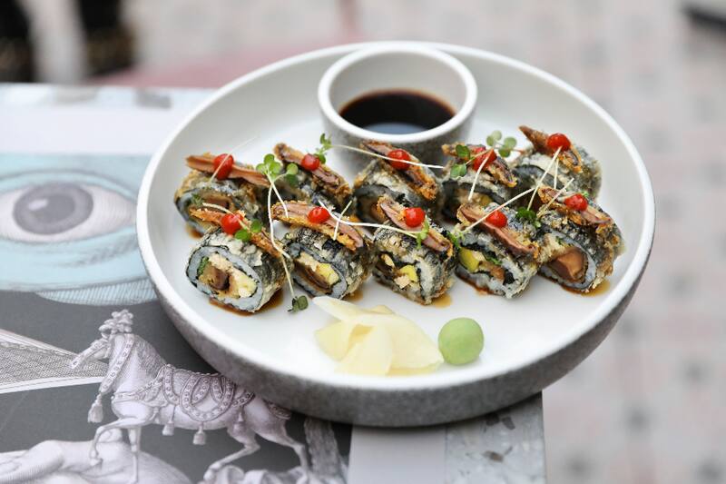 En tanto sorprenden sus calamares del futuro ($ 14.900), con puré de zanahoria, salsa tártara, yuca crocante, calamares crocantes y chalaquita; y el cazador vegetal ($ 13.900), unas brochetas de tofu, champiñones, cebolla, pimentón, zucchini grillados sobre babaganoush y una mini ensalada.