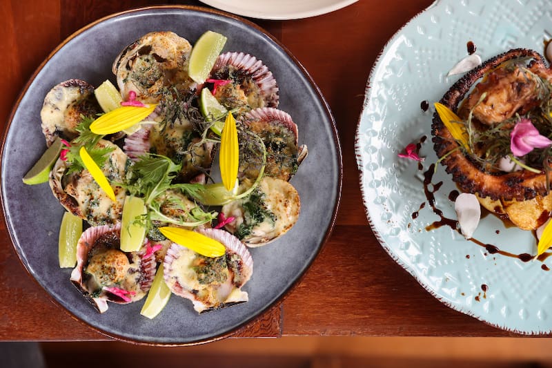 Los productos también son todos de la zona, como Juan Fernández, Quintay o Tongoy, u hortalizas de Casablanca. De fondo se puede elegir, por ejemplo, sobrecostilla o la pesca del día, o pastel de choclo con mini ensalada chilena.