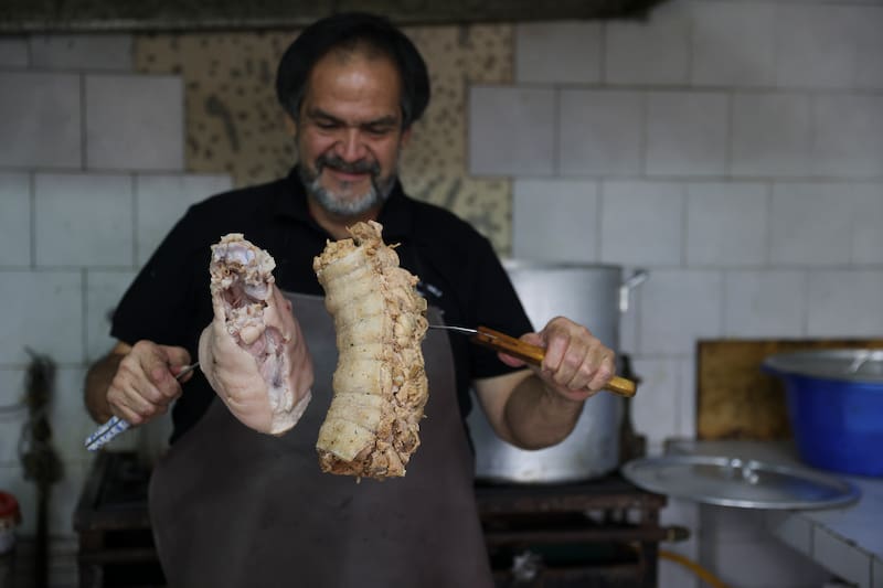 Pero si hablamos de chancho a la chilena, el pernil ($7.500 el kilo) no puede faltar. Cocido y jugoso, es una maravilla que debes probar con la pasta de ají que venden en el mismo lugar. Al igual que el glorioso arrollado ($1.200 el kilo), pura carne de cerdo en tiritas adobada de un día para otro y luego envuelta en el cuero del animal.