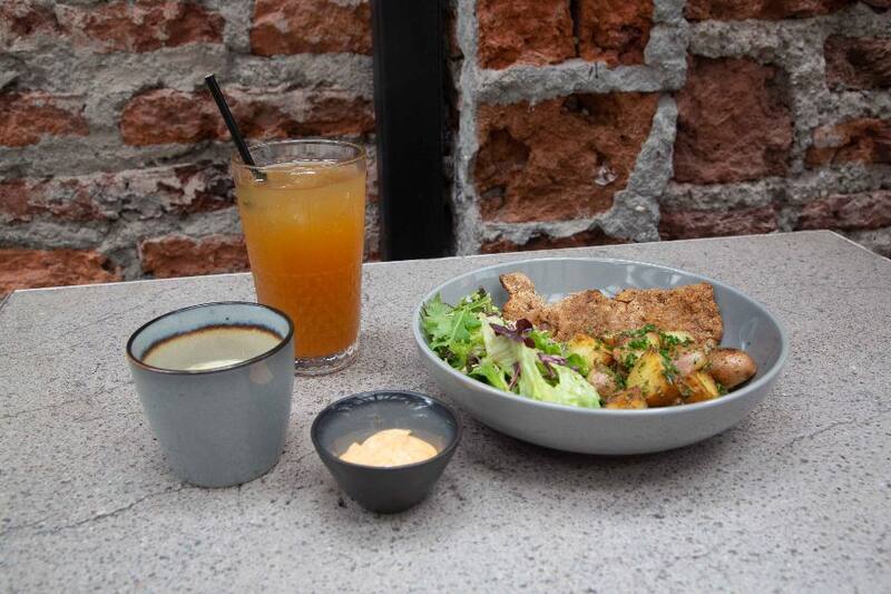 También puedes ir por el bagel ($ 5.100) con jamón ahumado, crema de quesos maduros, espárragos encurtidos y hojas verdes que es bueno acompañar de un americano doble ($ 2.200) o el té frío ($ 2.400) del día.