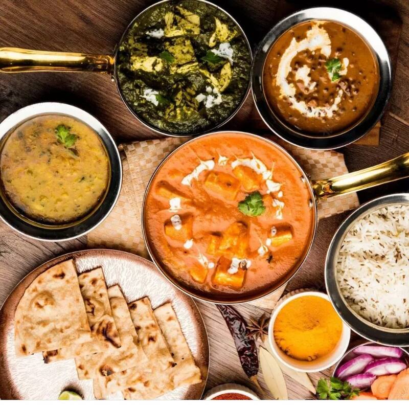 Además de Biryani Rice, arroz aromático con cebolla caramelizada, cúrcuma y especias; y Butter Naan, el clásico pan delgadito, hecho al horno de barro a la mantequilla. Más un postre, Gulab Jamun, que son bolitas de leche en Almíbar.