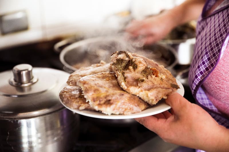 Lo que ahí encuentras es la cocina patrimonial de Lorna Muñoz Arias, quien viajó a ExpoMilán en 2015 y es la coatura junto a Renato Cárdenas del libro Chiloé contado desde la cocina.