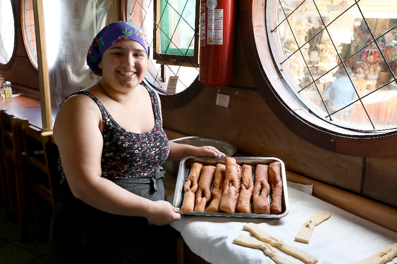 Además, en el segundo piso encuentras el área de las cocinerías, que funcionan desde tempranito y donde puedes probar el mejor de los desayunos chilotes, con milcao, pan propio de la zona, que se hace con una mezcla de papa cocida y cruda y que se cocina al horno, al rescoldo, hervidos o fritos.