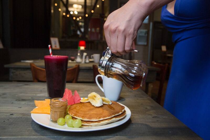 Como el "Pancake Breakfast", que son unos esponjosos, gorditos, al estilo de la abuela, con frutas de temporada, manjar y todo el jarabe casero que quieras.