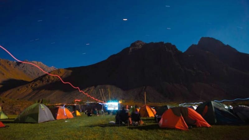 Para eso, en el sector de Lo Valdés, en San José de Maipo, habrá una pantalla instalada a cielo abierto, en medio de la naturaleza. Ahí podrá acampar o ir por el día a ver alguna película, como Volcán Corcovado, la cinta que cuenta la aventura de unos exploradores que subieron ese volcán en la Región de Los Lagos.