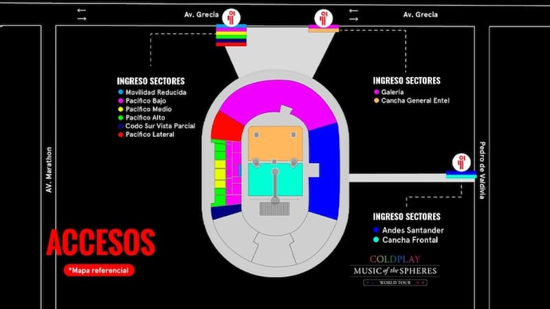 Hay diferentes accesos depediendo de tu entradas. Quienes tienen Andes Santander y Cancha frontal debe ingresar por Av. Pedro de Valdivia.