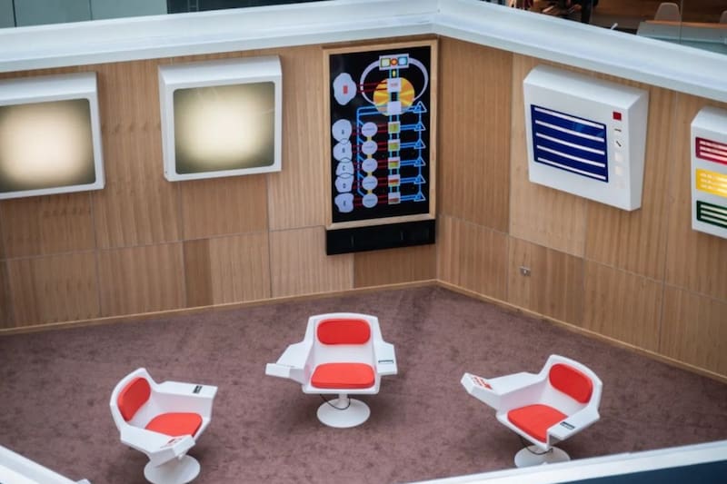 Y esta exposición recrea la sala de operaciones de Cybersyn, a la que puedes entrar y fotografiar. Eso sí, no está permitido grabar videos ni manipular botones y otros elementos presentes.