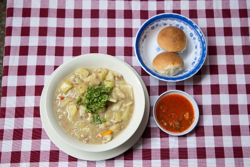 Si te toca “cazuela de ave” ten por seguro que viene con una buena presa de pollo y las verduras al dente, lo mismo que si piden "pollo arvejado" con arroz, con un trozo de carne que no te dejará con hambre.