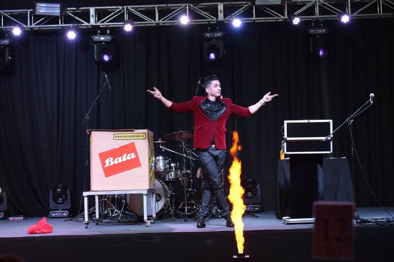 Lo de él es un show de ilusionismo, con mesas que vuelan, trucos con flores y sombreros de copa. Todo muy clásico y en 50 minutos.