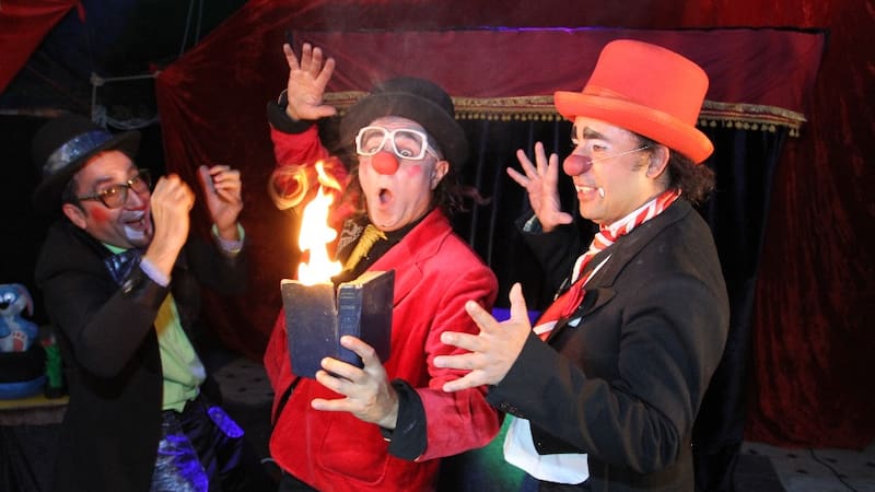 Ojo con la performance del payaso Chirlito: hace reír más a los papás que a nadie, con su característico humor absurdo.