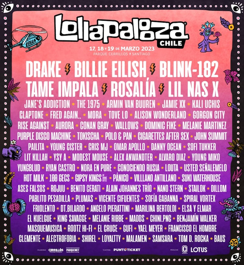 Con Drake, Billie Eilish y Blink 182 a la cabeza: este es el line up de Lollapalooza Chile 2023