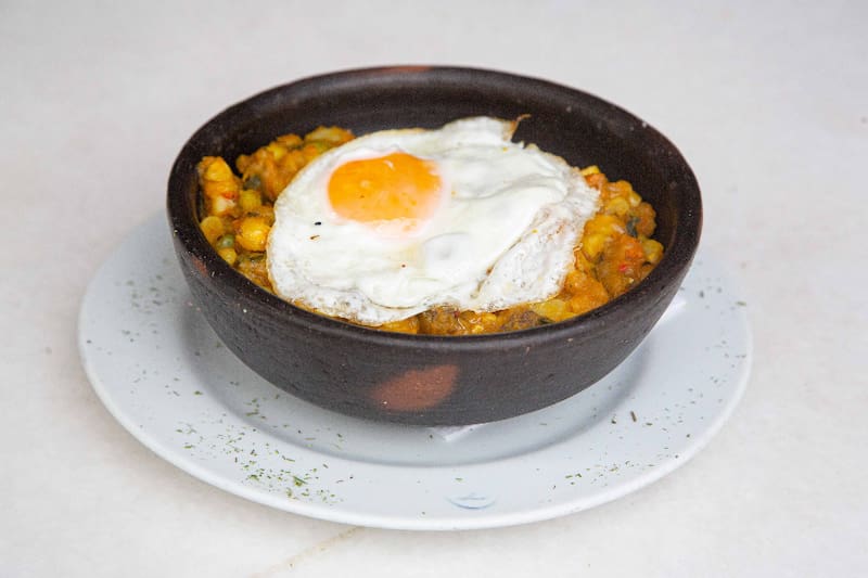 Se sirve en marraqueta, también pasada por la plancha, para que quede tostadito y con la miga untada en el juguito de la carne.