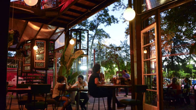 El Bar Valdivia lleva apenas tres días frente al nuevo Metro Inés de Suarez con una fachada más que llamativa, con muros de latones coloridos y puertas y ventanas de distintos tamaños y estilos. Desde afuera, además, se ven sus dos agradables terrazas, una en el primer piso y otra en el segundo.