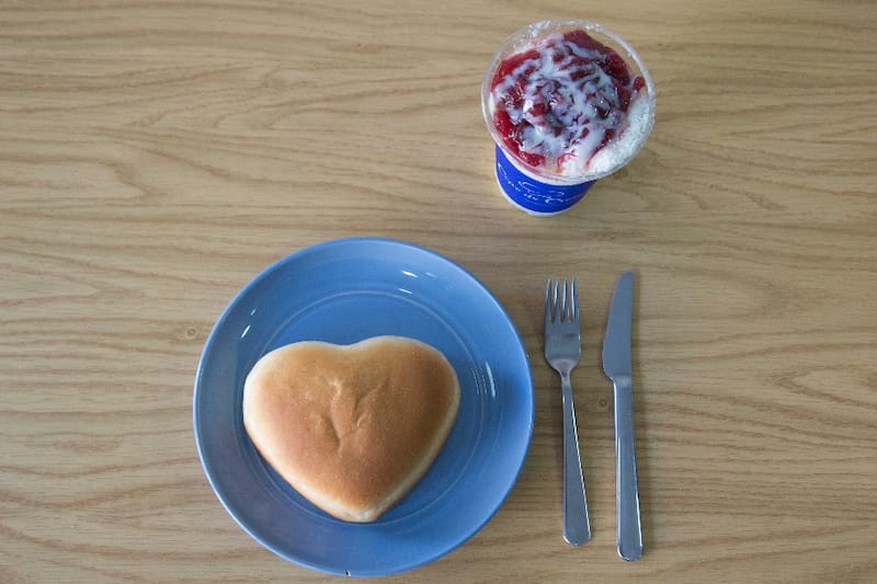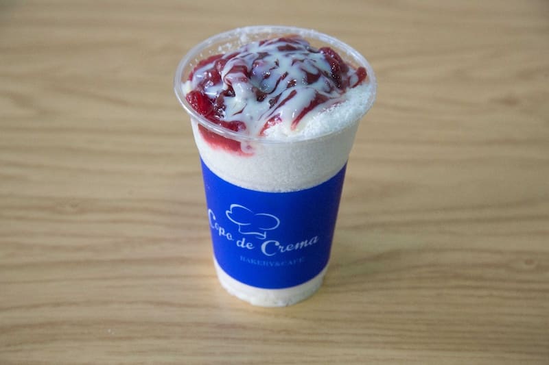 En Copo de Crema puedes acompañar tu "Bing- su", con alguno de los productos de panadería hechos en el lugar, como alguno de los bollos o "panes", que cuestan entre $ 1.500 y $ 2.000.