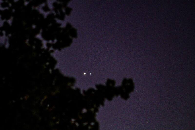 Incluso, con un telescopio sencillo, de esos caseros, se podrán apreciar también las lunas galileanas de Júpiter: Ío, Europa, Ganimedes y Calisto. Como en la foto superior, que tomó ayer Tracy Catalán, donde se aprecia Jupiter con sus lunas (el objeto más grande) y Saturno.