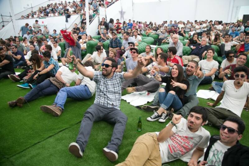Si prefiere ver el partido al aire libre, vaya al óvalo del Parque Bicentenario de Vitacura, porque desde las 1.15 PM se encontrará con un evento que combina fútbol, música y cerveza. Ahí estará instalada la pantalla gigante de 12 por 8 metros y las galerías que recibirán a 2.000 fanáticos para vivir esta fiesta del fútbol. Antes de que suene el pitazo inicial, acérquese a la barra donde puede pedir cerveza Heineken, agua, bebidas y hasta sánguches, totalmente gratis.